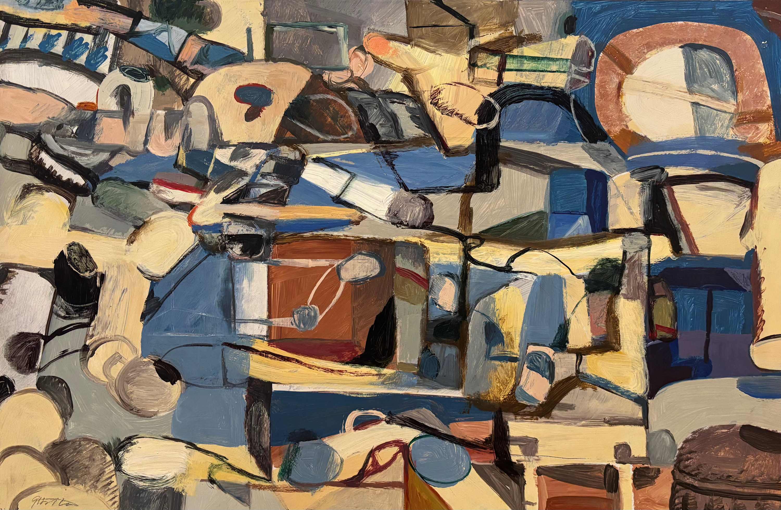 In his final fifteen years, Holtan turned entirely to painting, leaving narrative for abstraction. The works from this period, presented here, reveal an artist liberated from constraint in an open channel. Instructions for Arrival is an abstract visual maze that invites reflection. His canvases suggest structure, vitality and play.